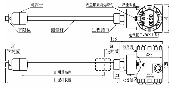 BTY-CM兩線制高精度智能磁致伸縮液位計,是基于磁致伸縮感應扭轉波原理研制而成的可同時測量液位、界面的測量儀表。由于其測量過程中不受壓力、溫度、介電常數(shù)等因素變化的影響,具有精度高、穩(wěn)定性好、可靠性高、使用壽命長、安全可靠等優(yōu)點。被廣泛應用于過程控制、石油加工、制藥、食品加工、水處理、罐區(qū)管理、加油站地下庫存等領域中的液位、界面的測量與控制。 智能磁致伸縮液位計具有HART 協(xié)議,可遠程調整零點和量程。也可通過機殼內三個按鍵與LCD 液晶進行各種參數(shù)調整??山M態(tài)的參數(shù)包括單位、顯示上下限、阻尼、平移修正、校準上下限、數(shù)模微調校正、恢復出廠設定等。